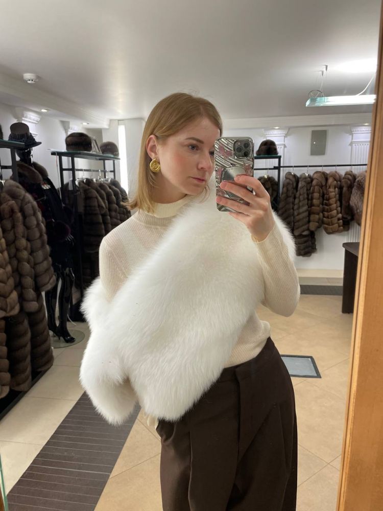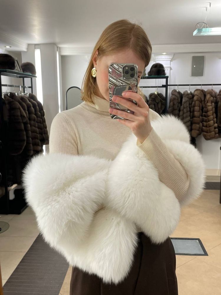 палантин накидка из белого натурального меха песца купить от бренда