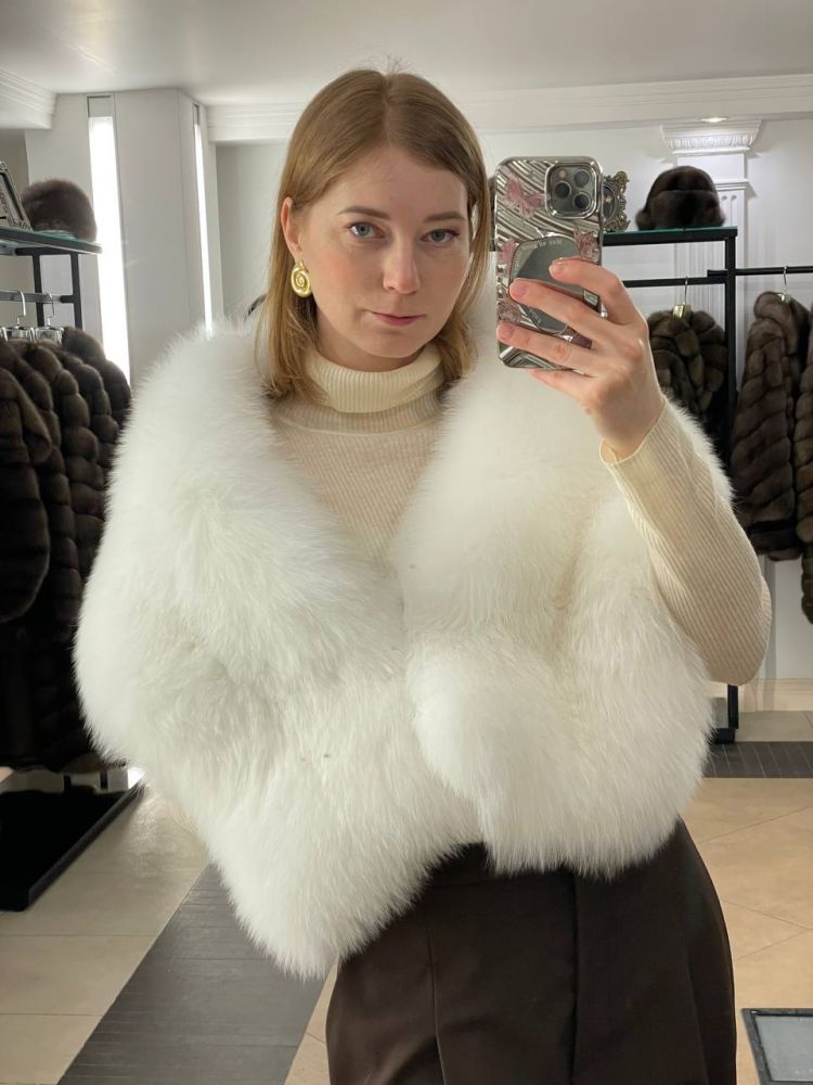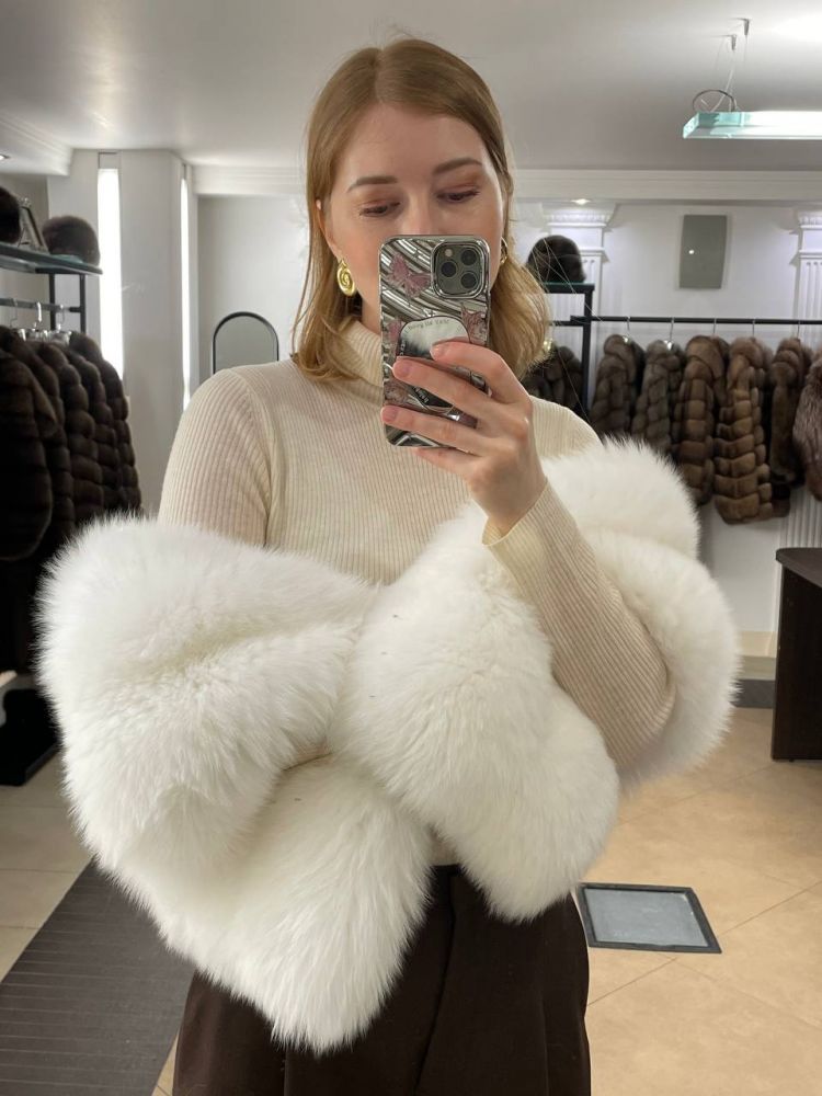 палантин накидка из белого натурального меха песца купить от бренда