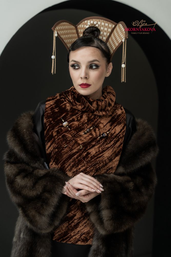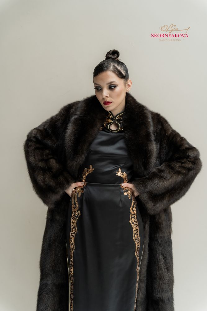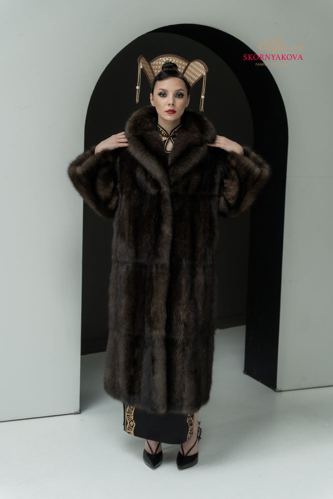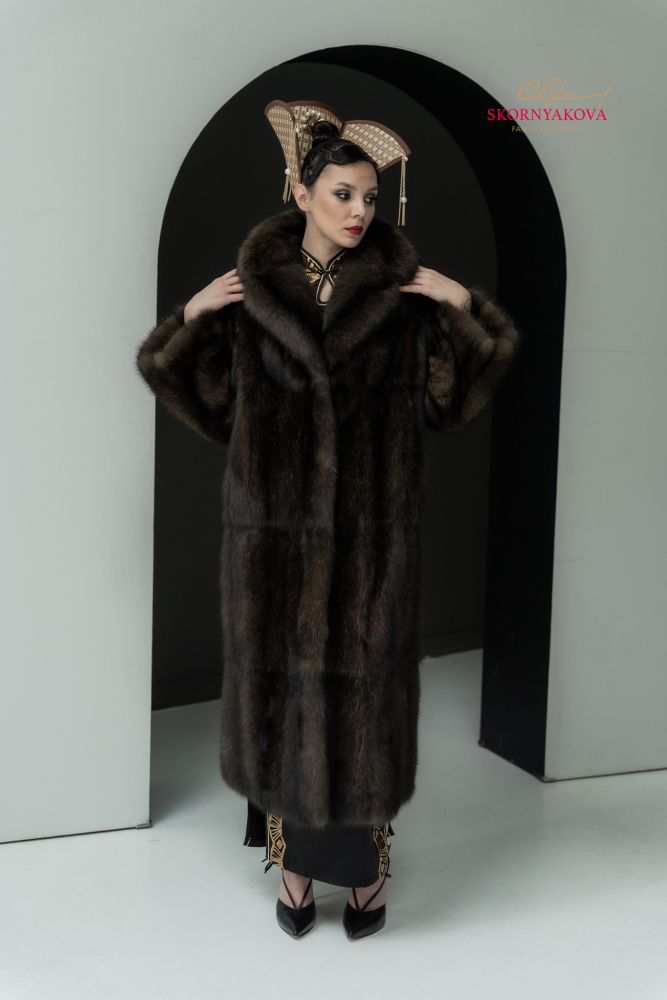 Воплощение эксклюзивности от «Скорнякова». Для этой модели был отобран самый редкий соболь первого сорта — его насыщенный тёмный цвет с холодным отливом и кристально чистый подпушок говорят сами за себя. Искусство мастеров довершило совершенство материала.