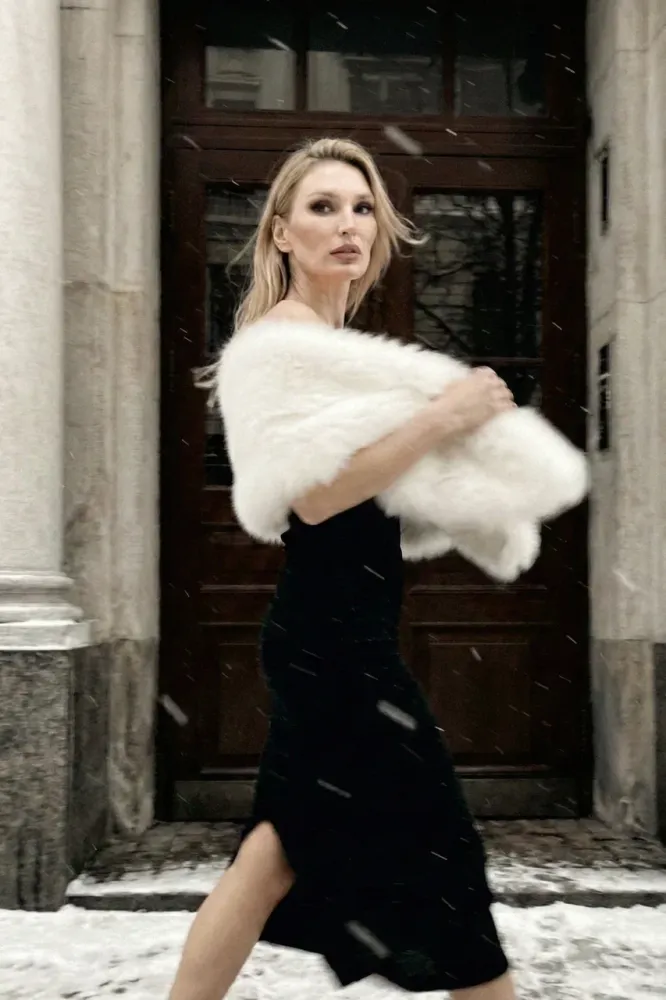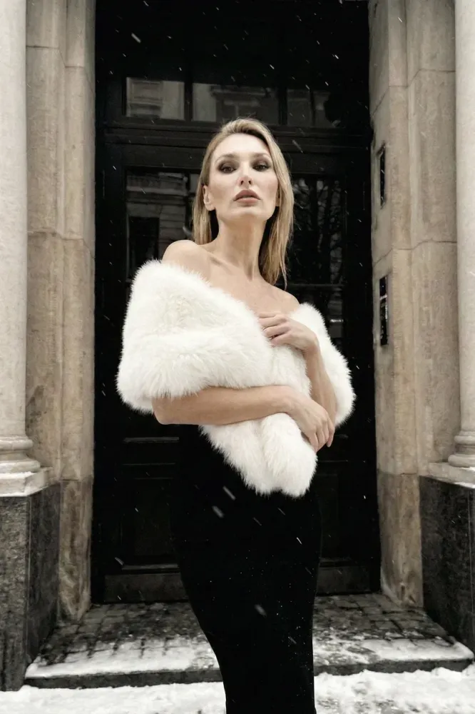 Приятная на ощупь и платсичная, легко накинуть не только как горжетку на платье, но и как шарф на пальто