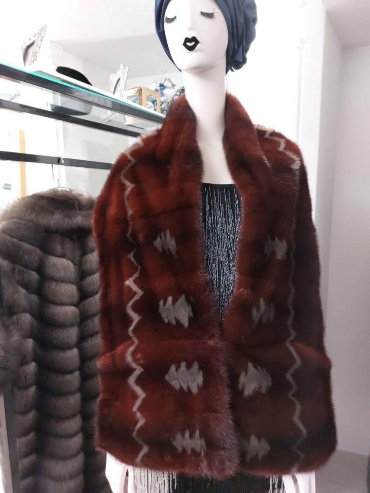 Эксклюзивный меховой палантин из норки с интарсией