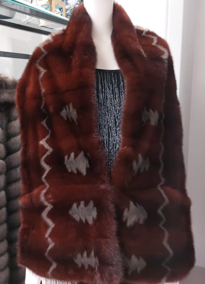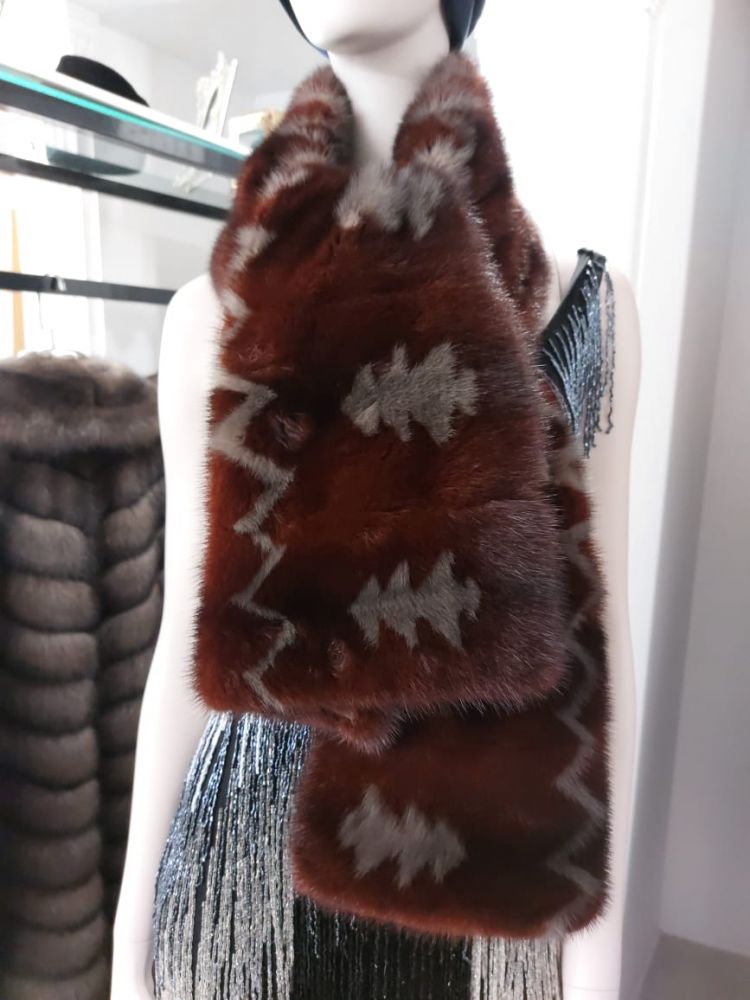 Эксклюзивный меховой палантин из норки с интарсией
