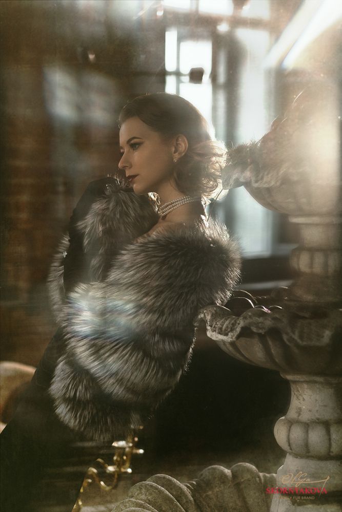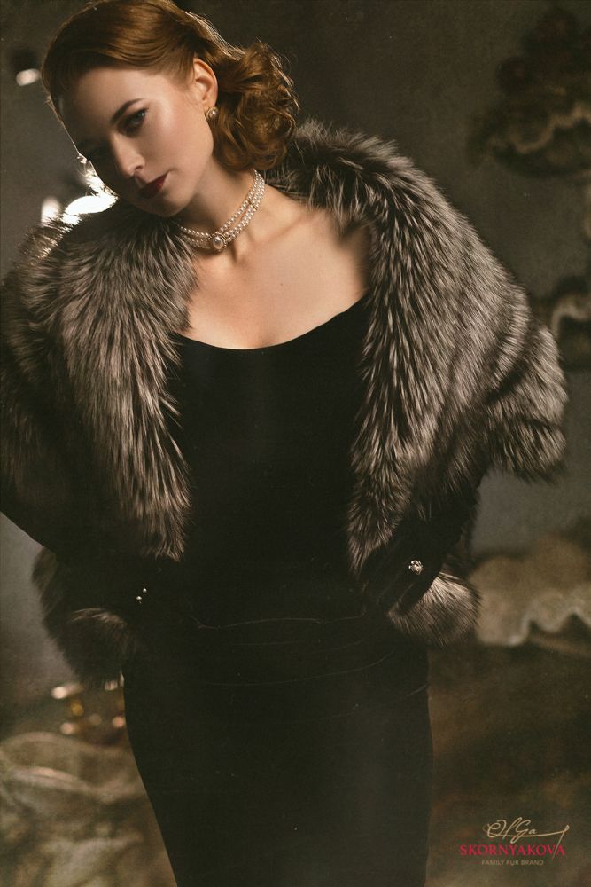 Пушнина выглядит потрясающе. Изумительная по крою и качеству авторская модель имеет идеальную посадку и подчеркивает женственность своей хозяйки, не прибавляя ей визуально «излишеств» фигуры. Длинная накидка из лисы натурального серебристо-черного цвета, на шелковой подкладке, великолепно смотрится.