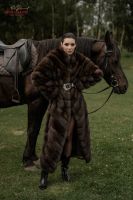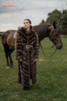 Купить шубу из соболя в Москве. Коллекция «Всадница»: длинная модель 130 см, диагональная раскладка, темный соболь 2 цвета, эксклюзив. 46-48 размер