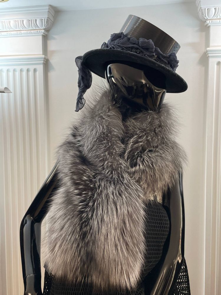 Накидка из серебристо-черной лисы. Лиса тона ледяное серебро. Бело-голубой оттенок меха невероятно освежающий!