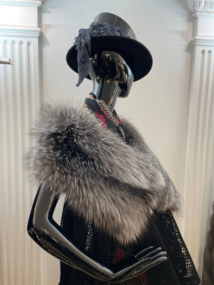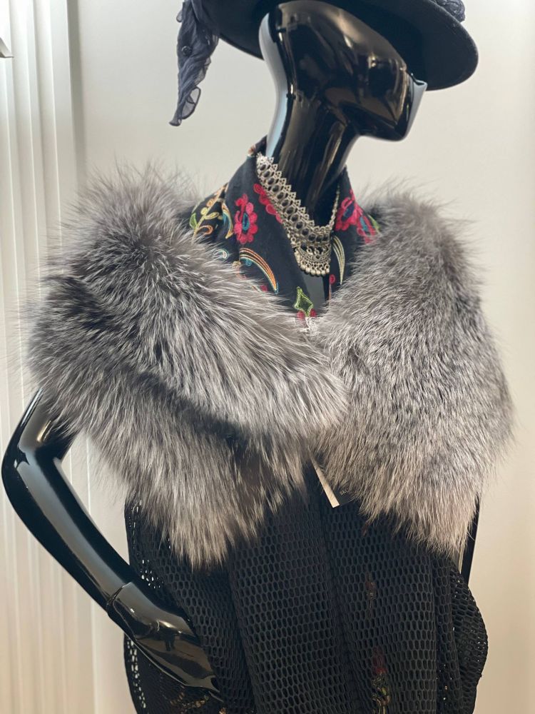 Накидка из серебристо-черной лисы. Лиса тона ледяное серебро. Бело-голубой оттенок меха невероятно освежающий!
