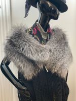 Женская меховая накидка из меха серебристо-черной лисы (чернобурки).