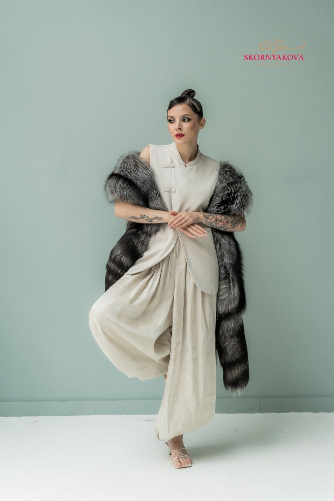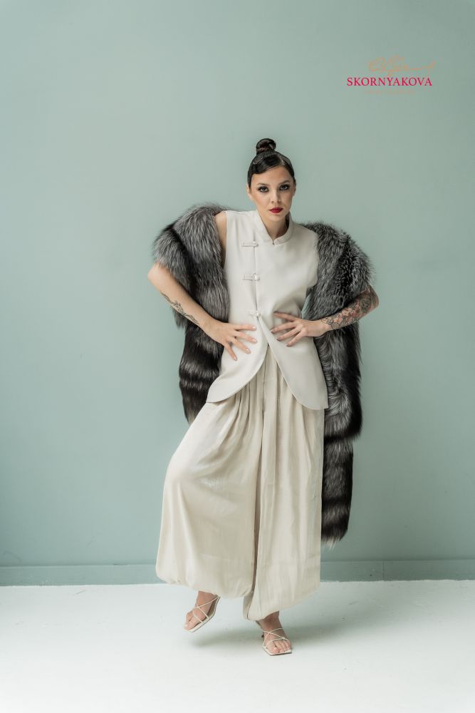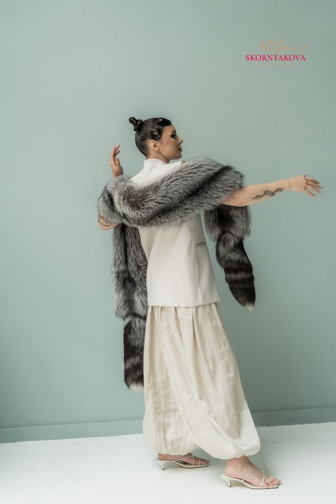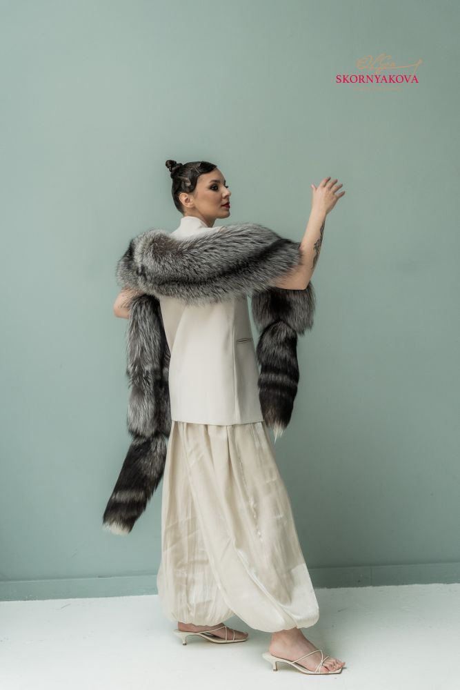 Меховой палантин из лисы. Палантин двусторонний, застегивается на крючки, есть съемные хвосты для создания образов в стиле Гэтсби, Голливуд, ретро, 20-е