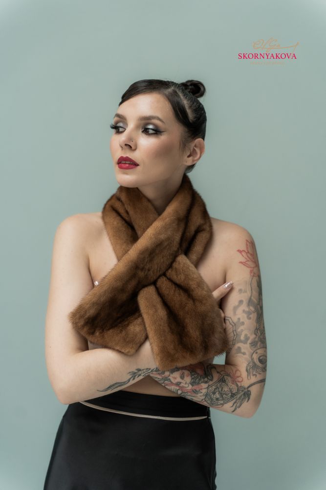 Золотой норковый шарф — главный аккорд осеннего гардероба.