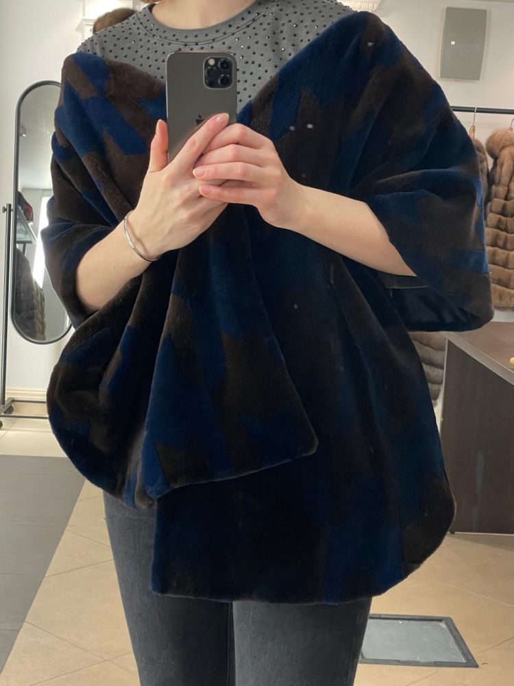 Большой уникальный палантин из меха норки. Полотно создано вручную, рисунок "пью-де-пуль" в технологии