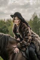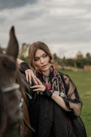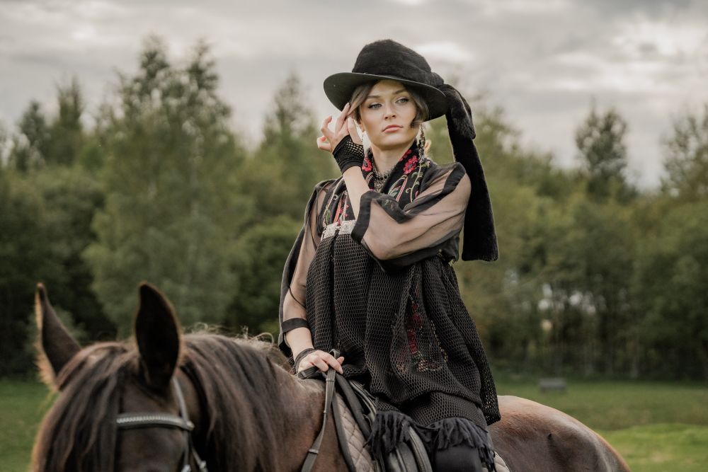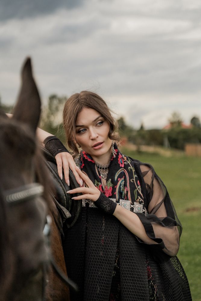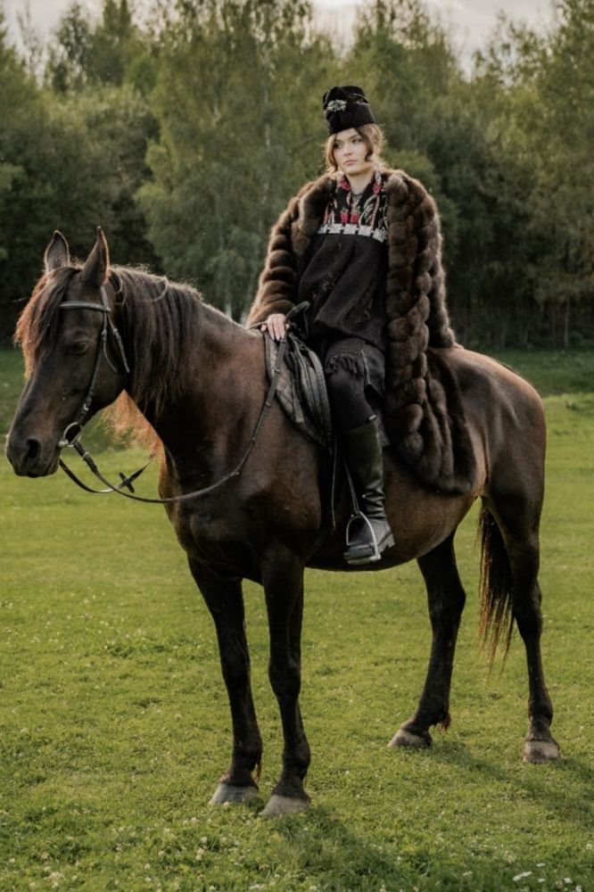 В паре с конём образ приобретает эпический масштаб: героиня словно сошла со страниц исторического романа, но при этом остаётся женщиной XXI века. Её взгляд спокоен, но в нём — твёрдость и достоинство.