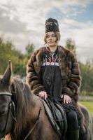 Этот снимок — не просто демонстрация соболиной шубы, а постановочный образ, в котором угадывается энергия живописи и дух легенды.