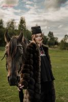 Нашим главным проводником в этом путешествии стала «Всадница» Карла Брюллова. Мы вглядывались не в сюжет, а в её пульс, в зашифрованный код силы и достоинства. Он ожил в драпировках, в линиях кроя, в игре света на соболином мехе.