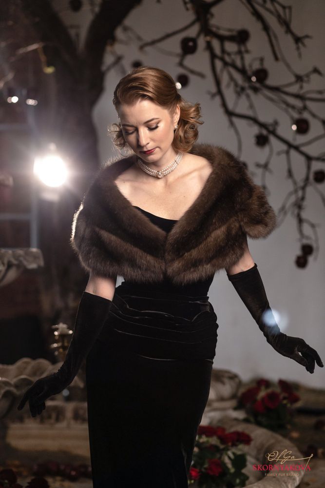 Женская соболиная накидка на платье от дизайнера Скорняковой