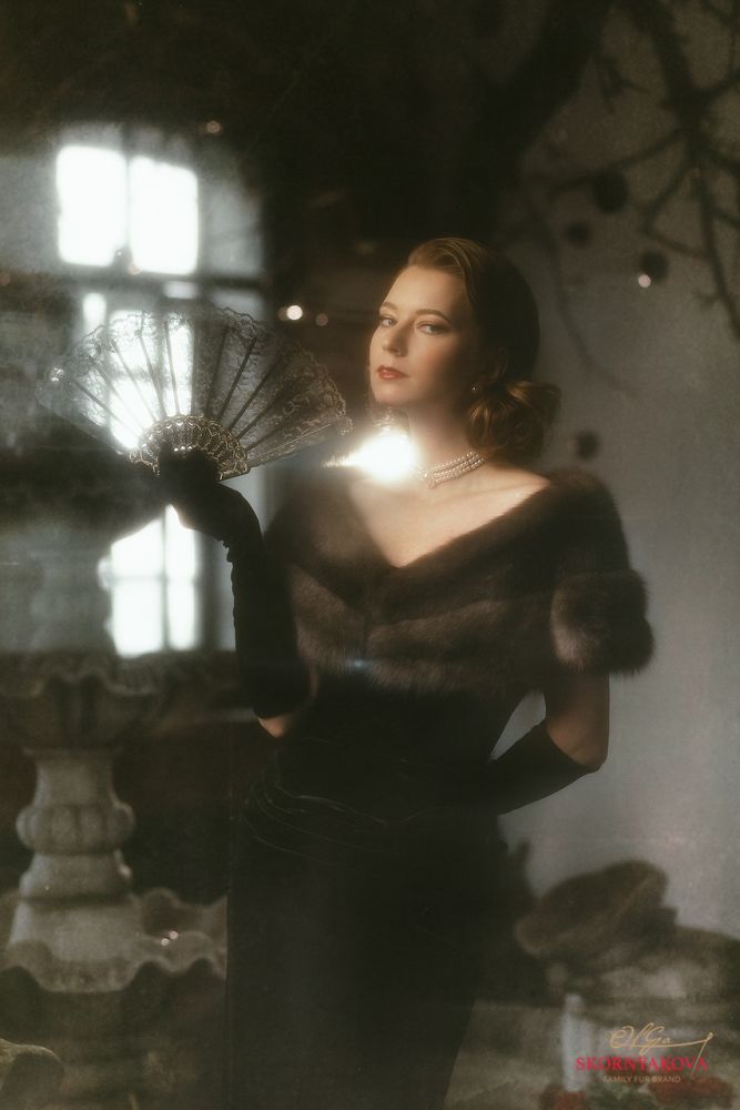 Женская соболиная накидка на платье от дизайнера Скорняковой
